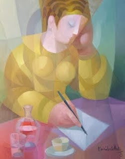 Estudada a pose, medida a situação, composto e recomposto o contexto, pinta com aplicação e “métier” a imagem parada no tempo e no espaço. Depois acontece o instantâneo ou não. Existe o contrate ou não. Fala um dizer diferente que fala dum momento específico de criatividade. Por vezes o inesperado: um discurso pictoral composto de diversidade que procura a unidade nos opostos.